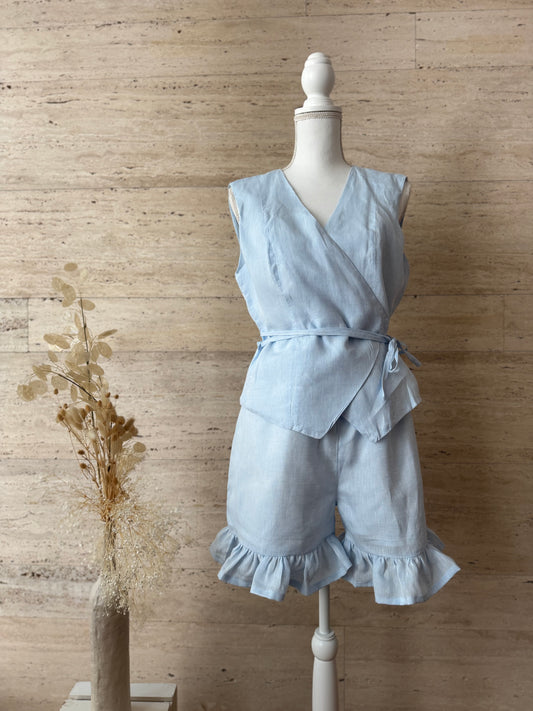 Completo Gilet Fragola e Pantalone Zaffiro in lino