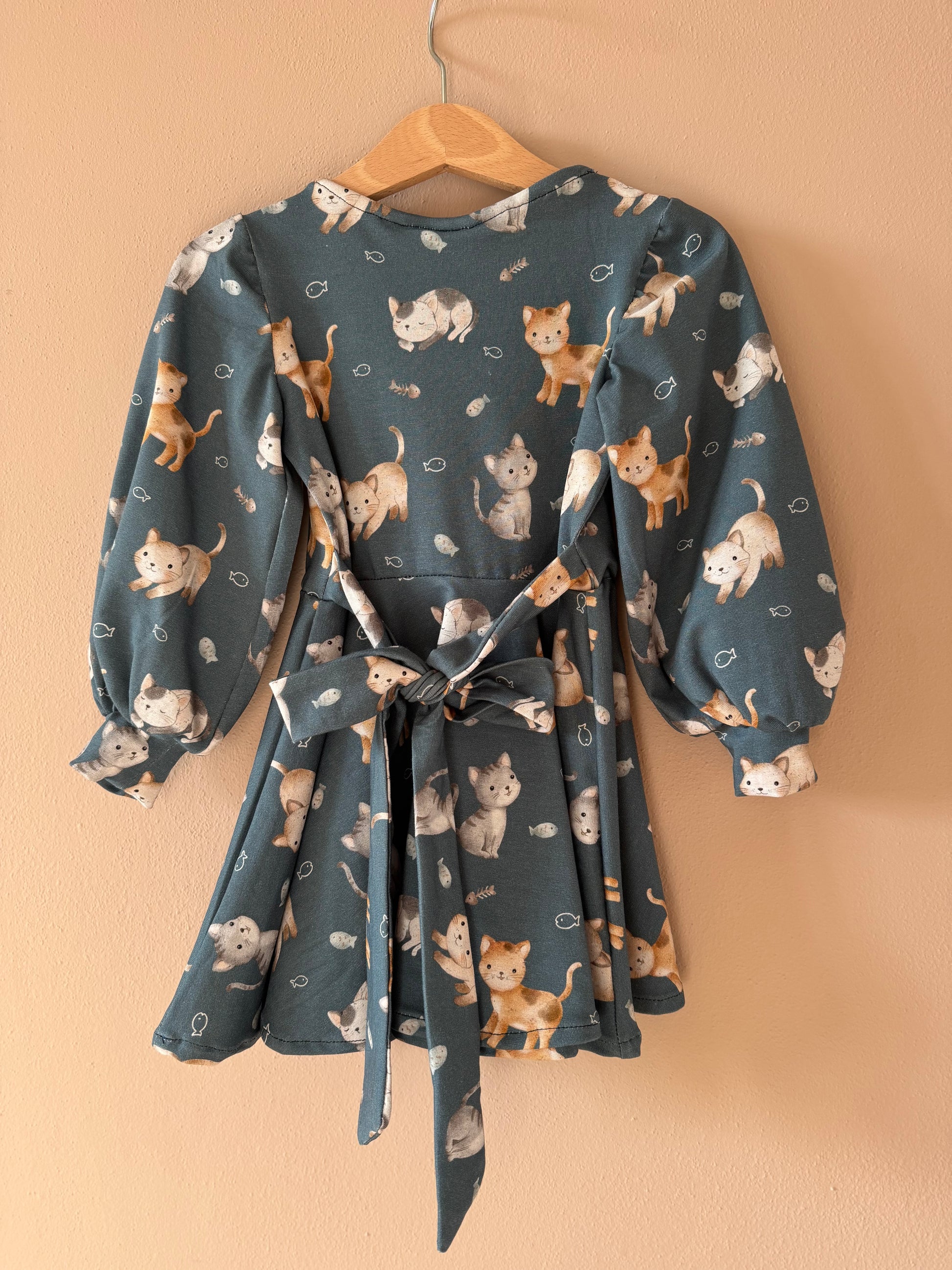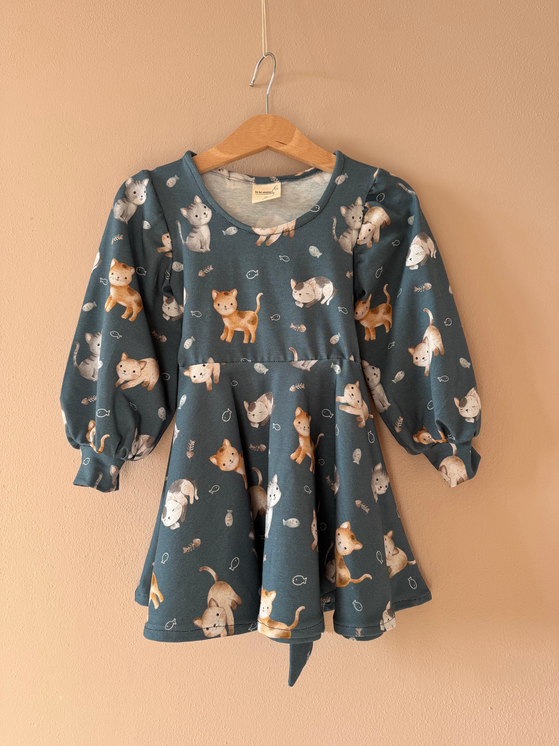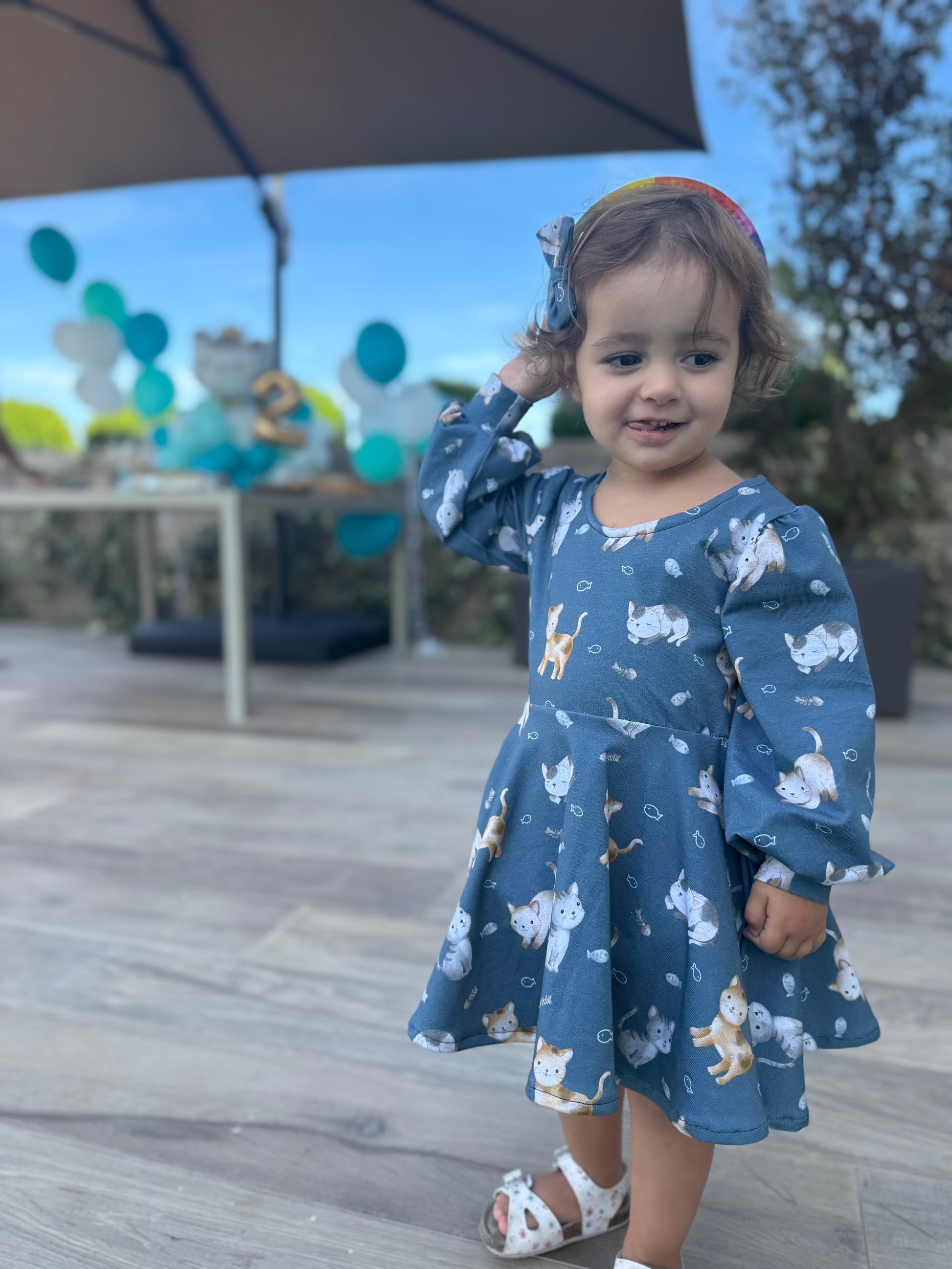 Abito in jersey di cotone con gonna a ruota e fiocco sulla schiena.