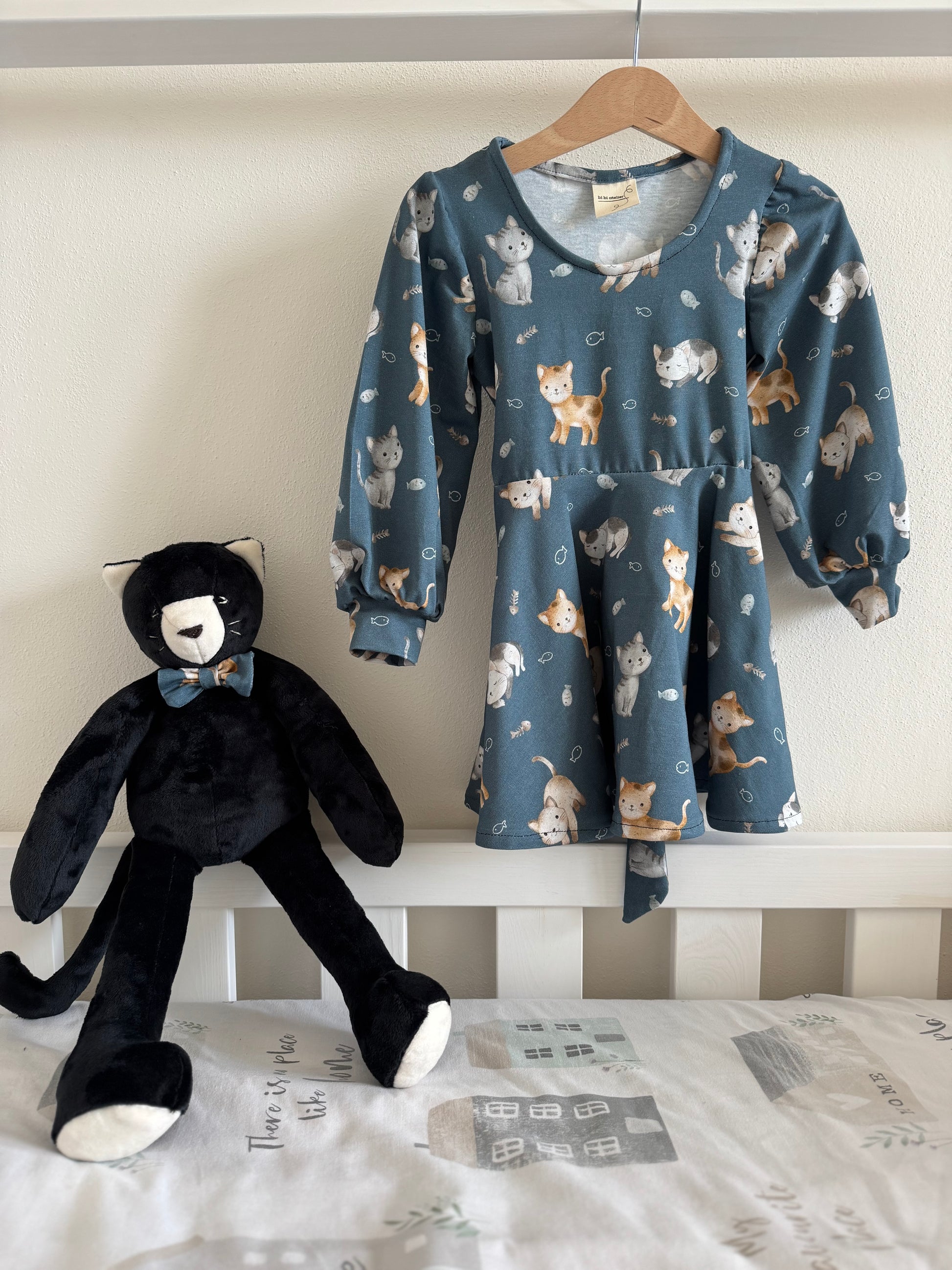 Abito in morbido jersey di cotone con gonna a ruota e maniche a sbuffo.