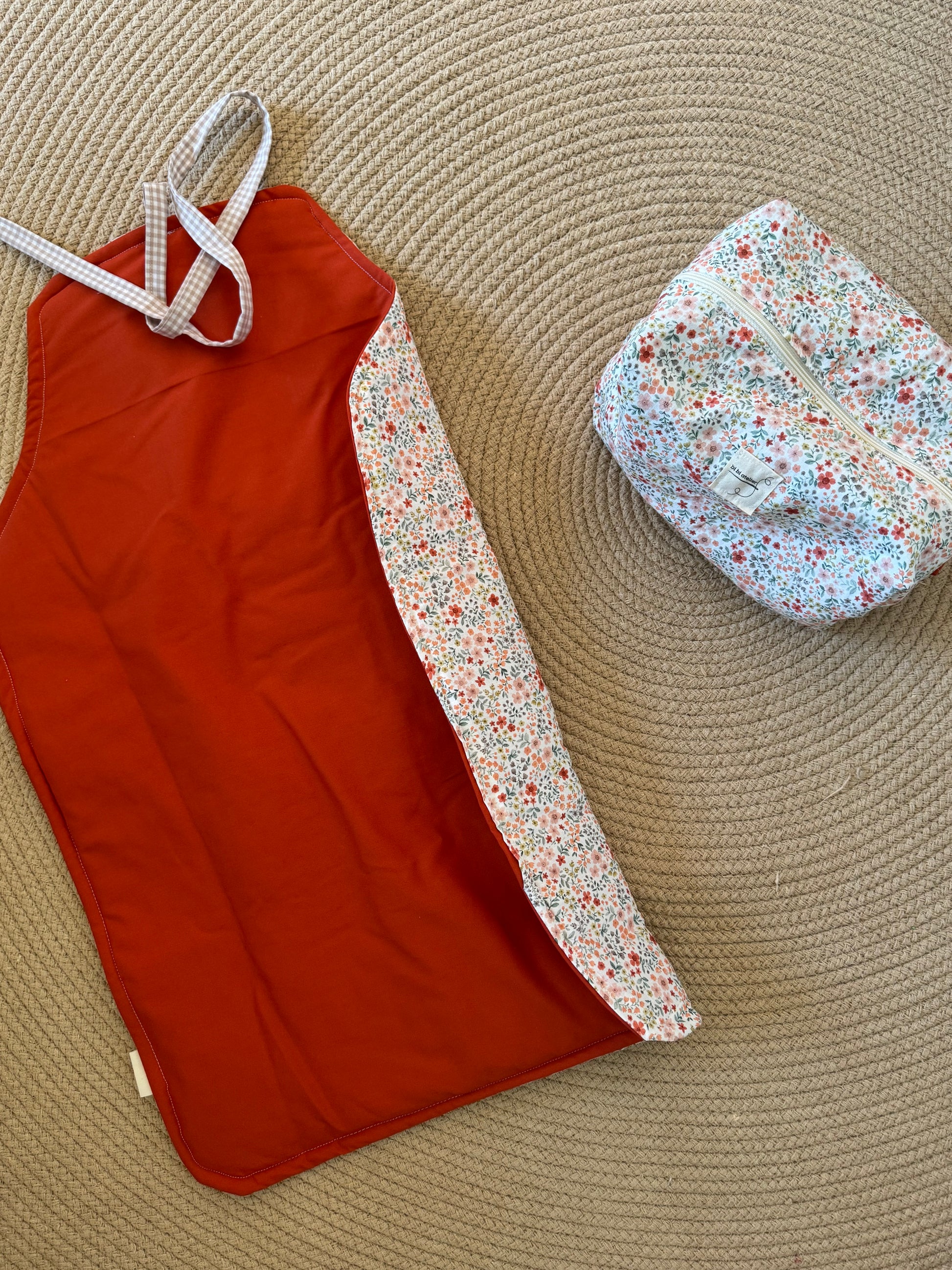 Astuccio portafasciatoio con fasciatoio e mussolina coordinati.