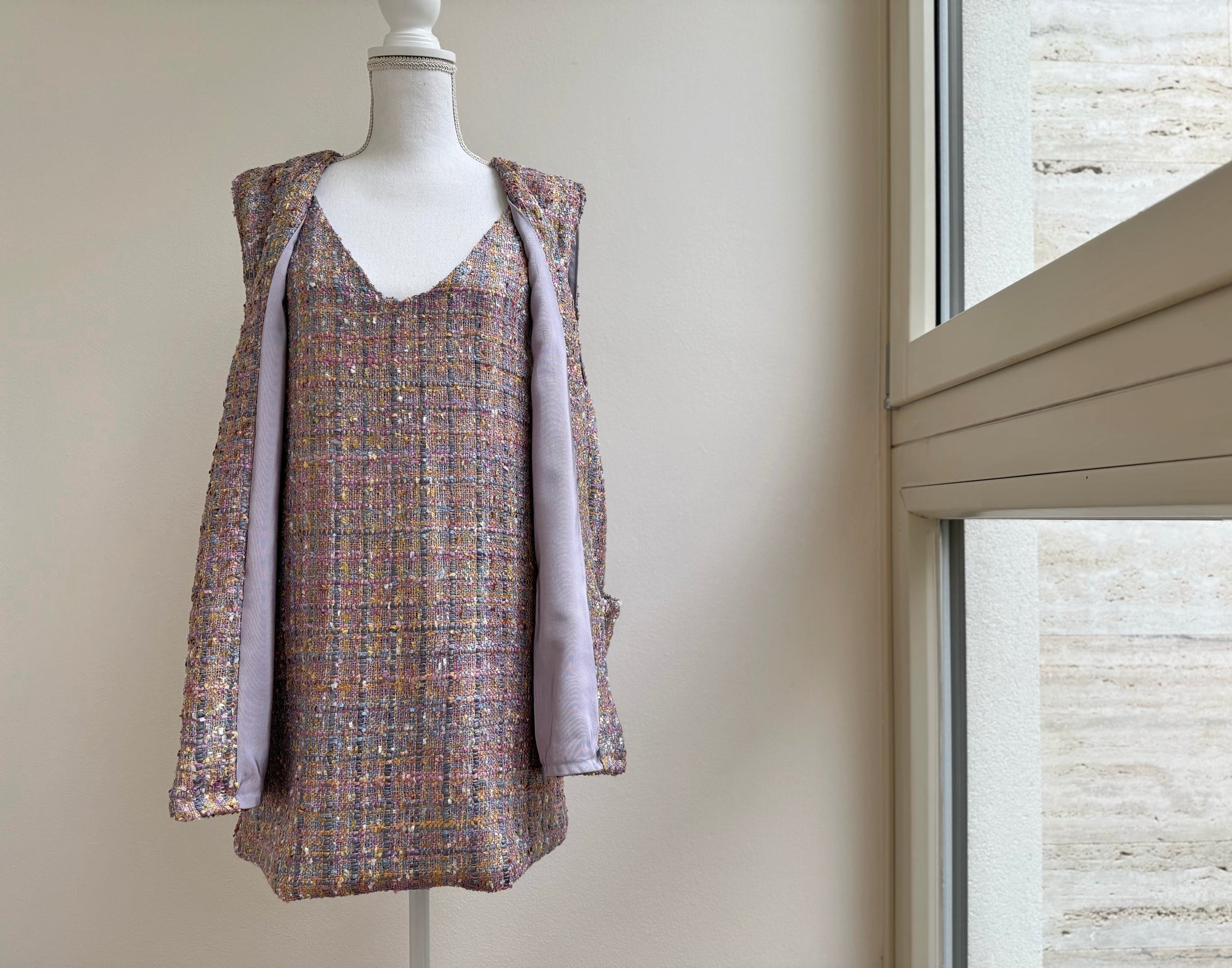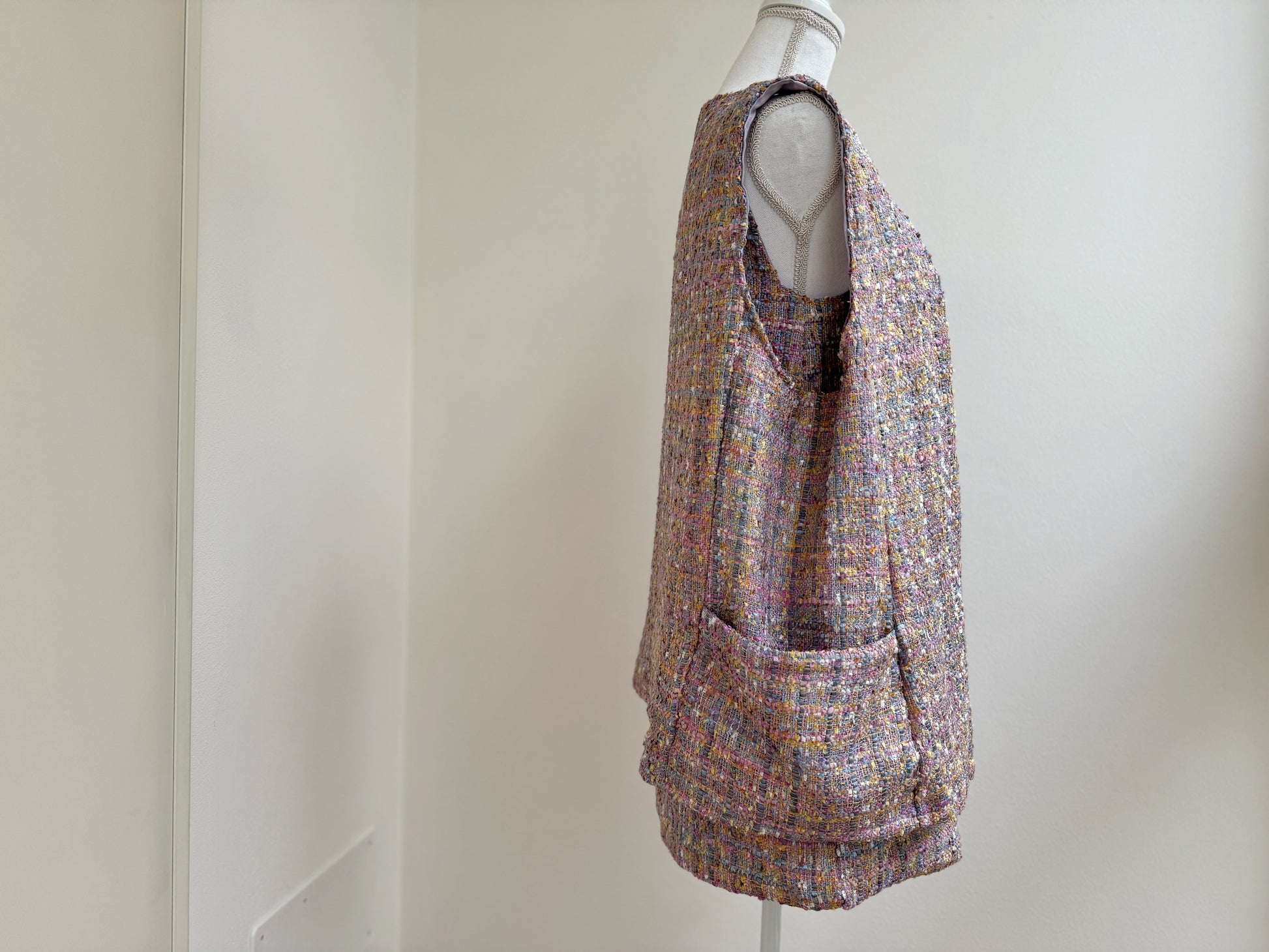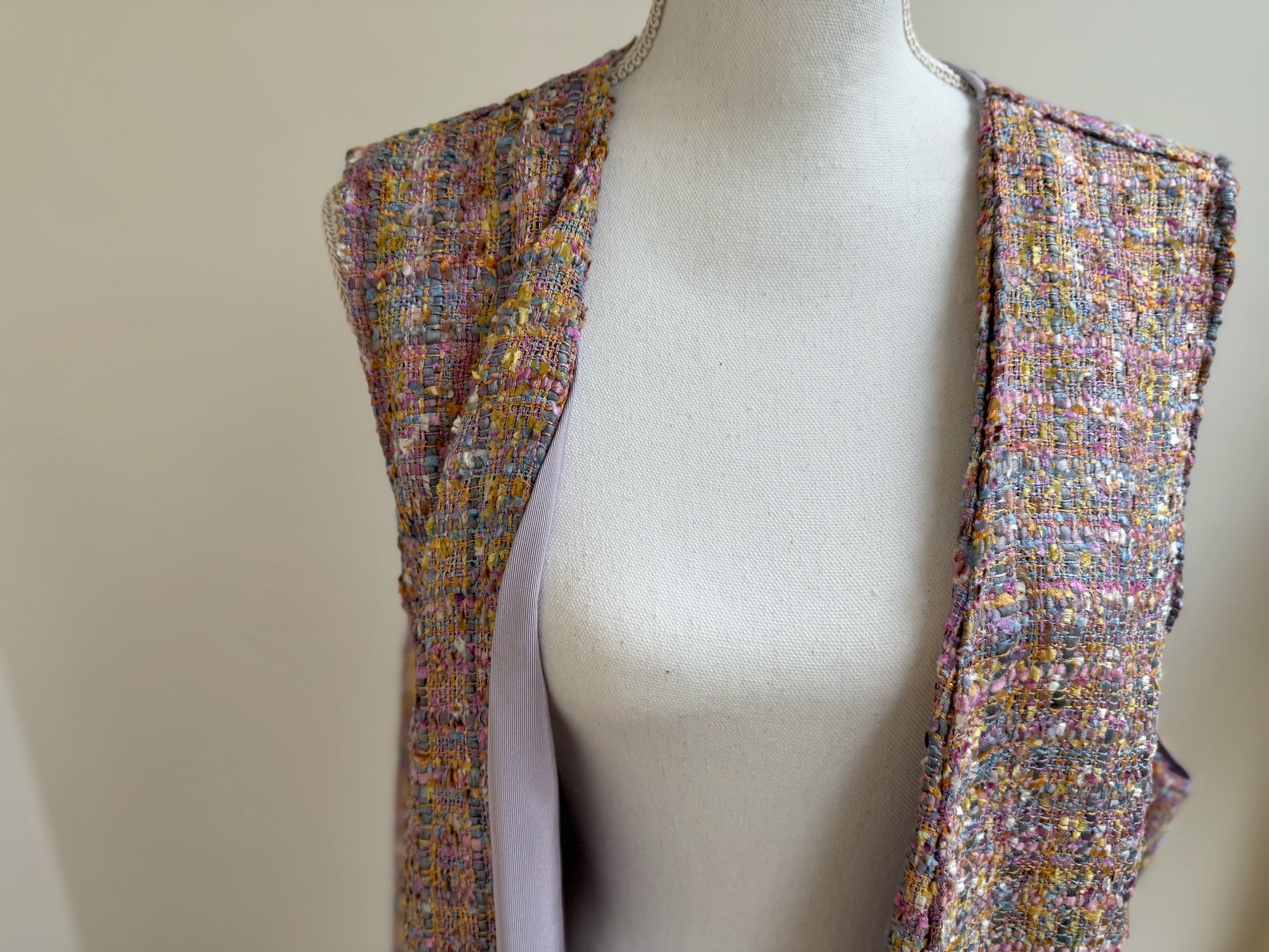 Gilet in morbido tweed di viscosa dai toni pastello.