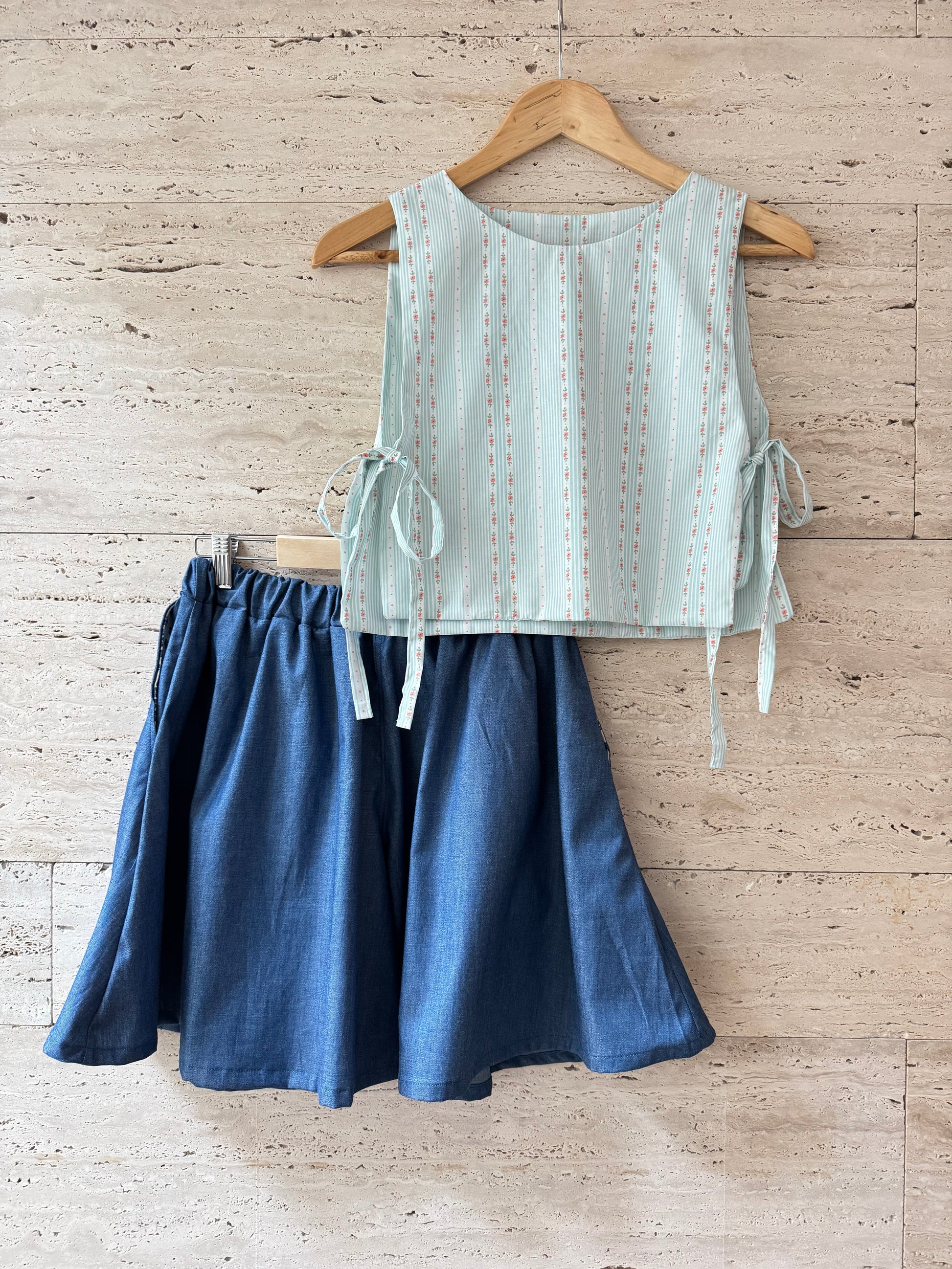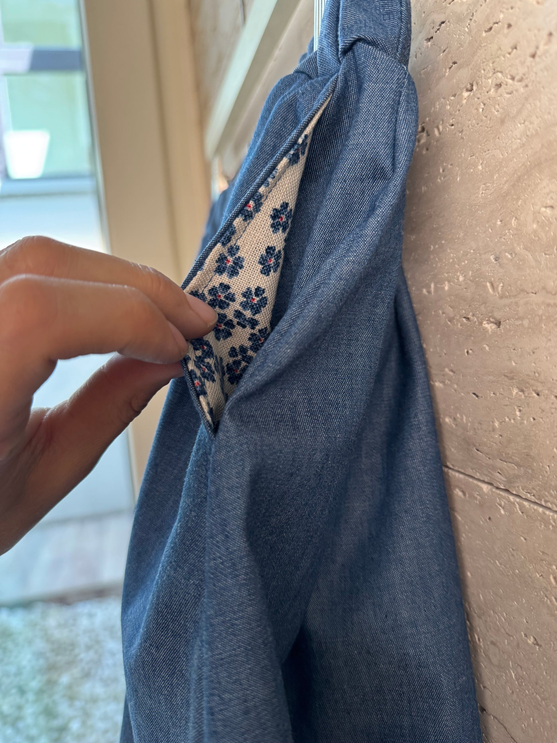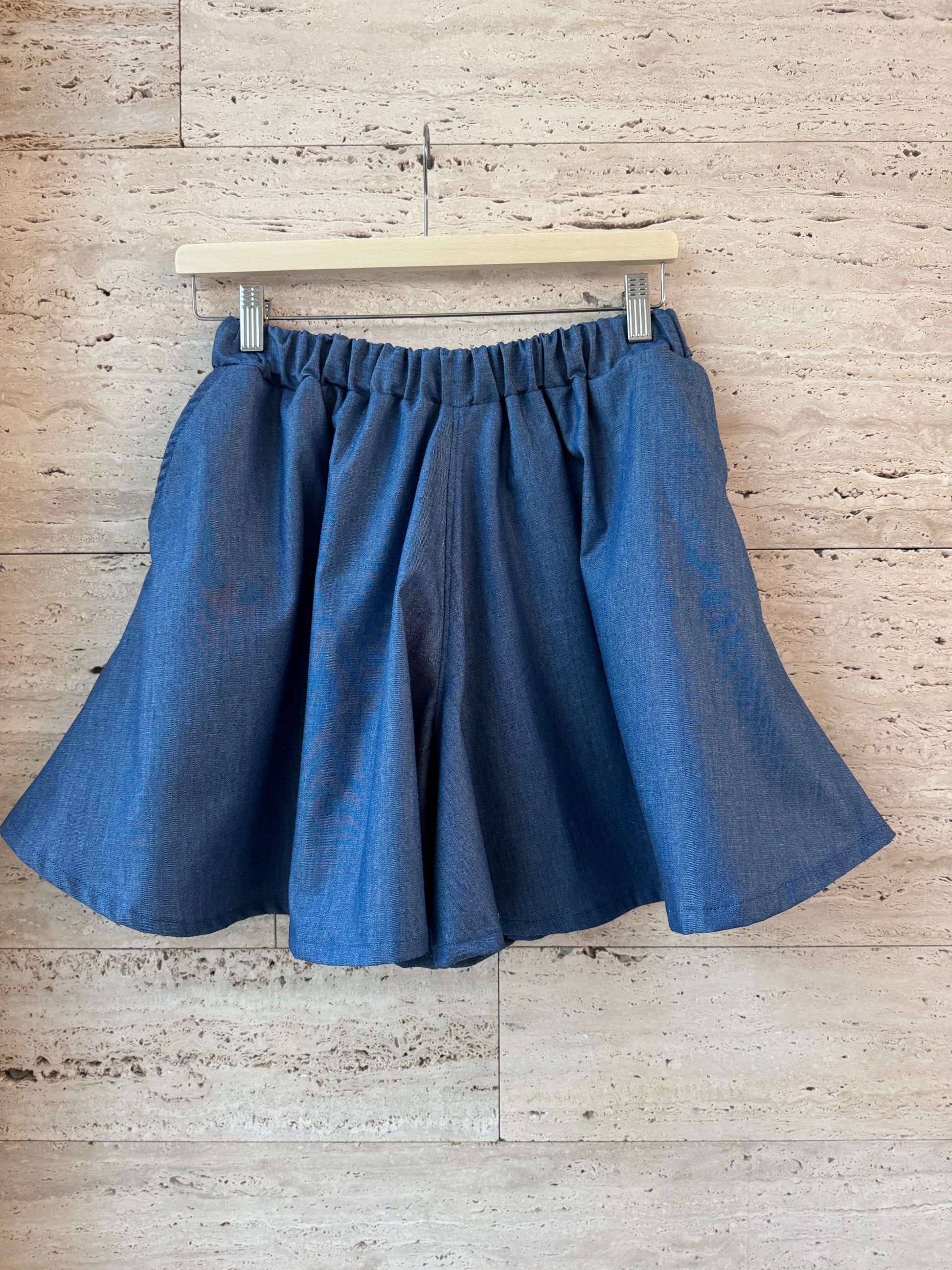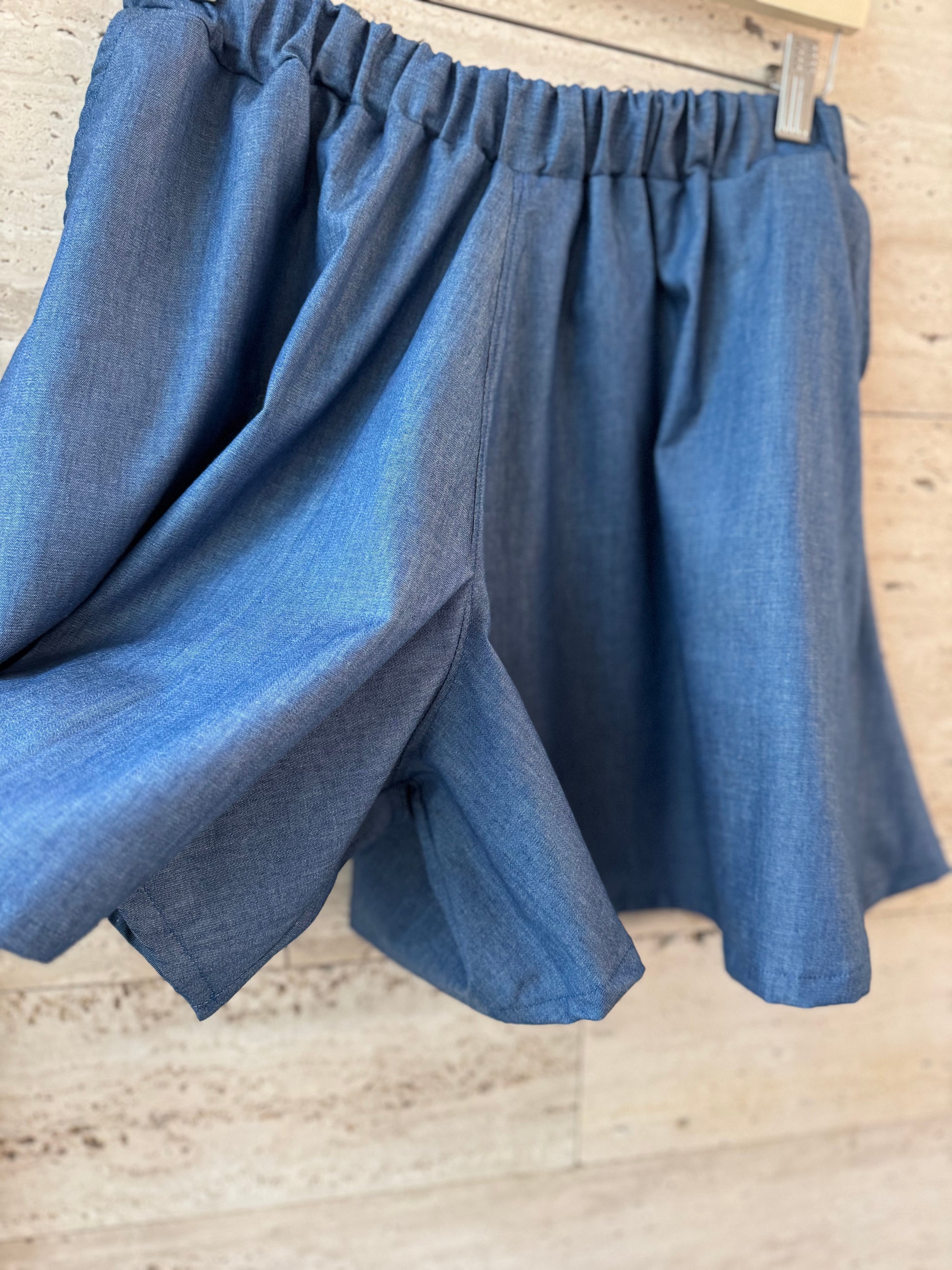 Pantagonna in mobido chambray di cotone con modello svasato.