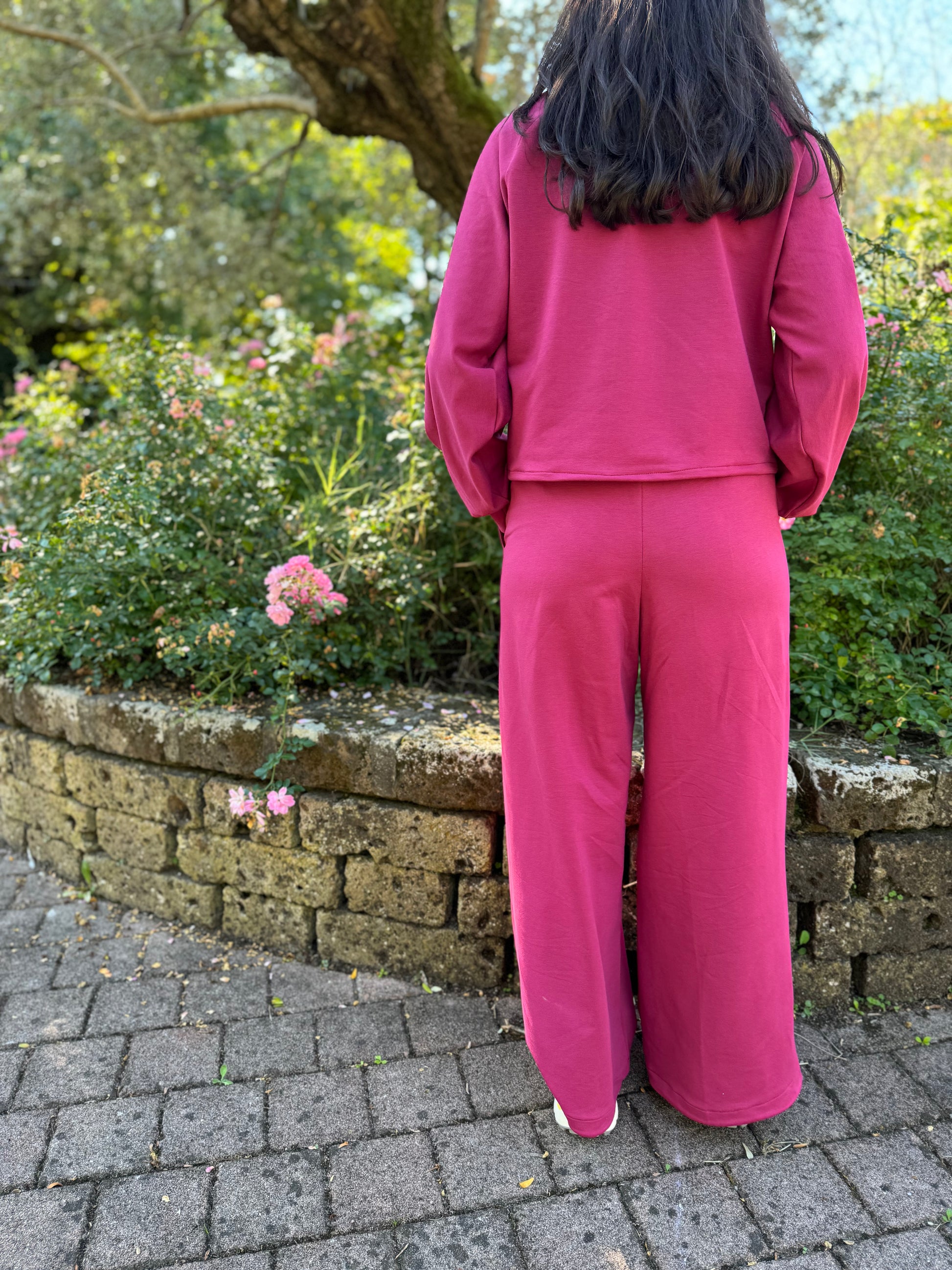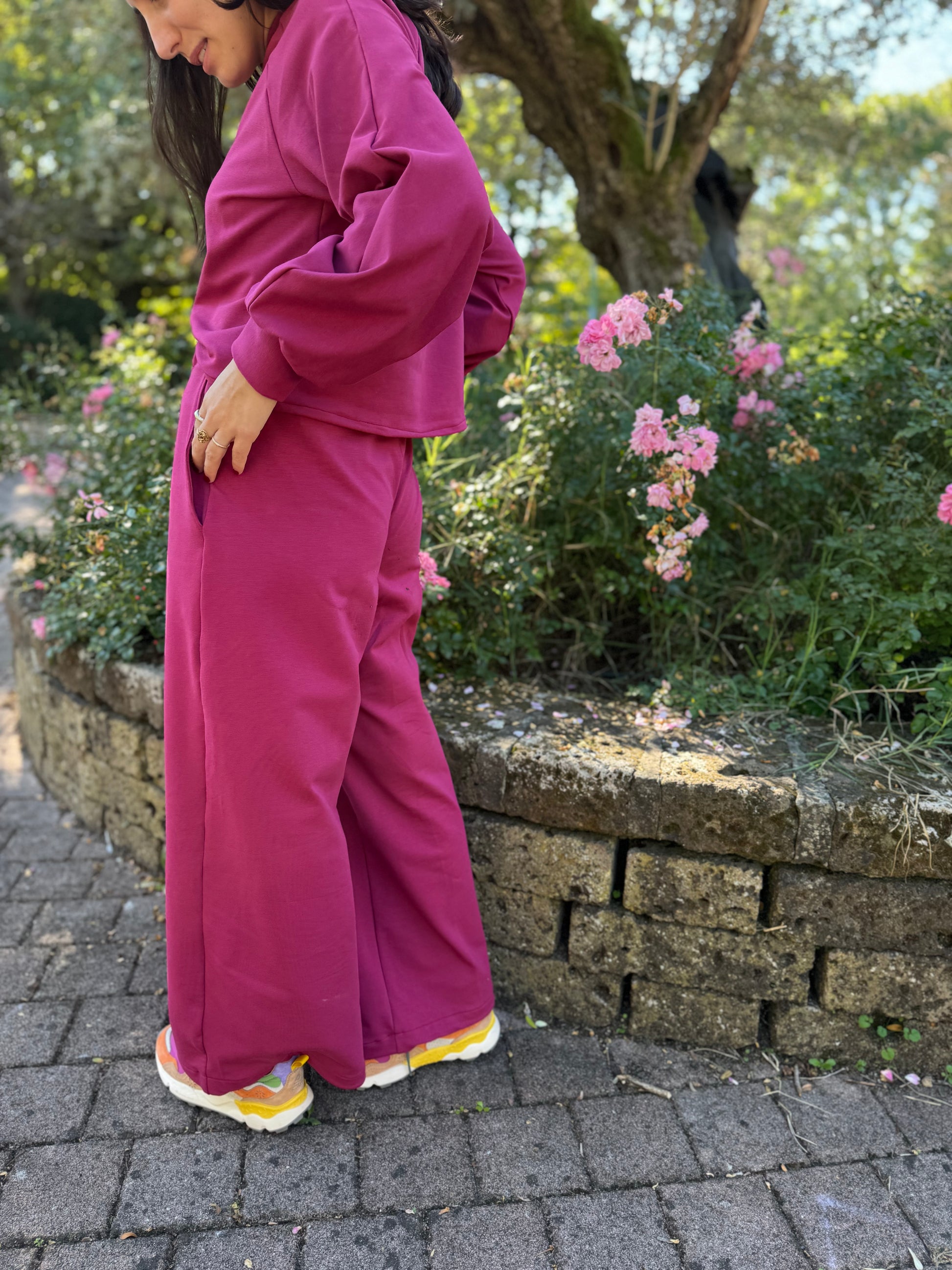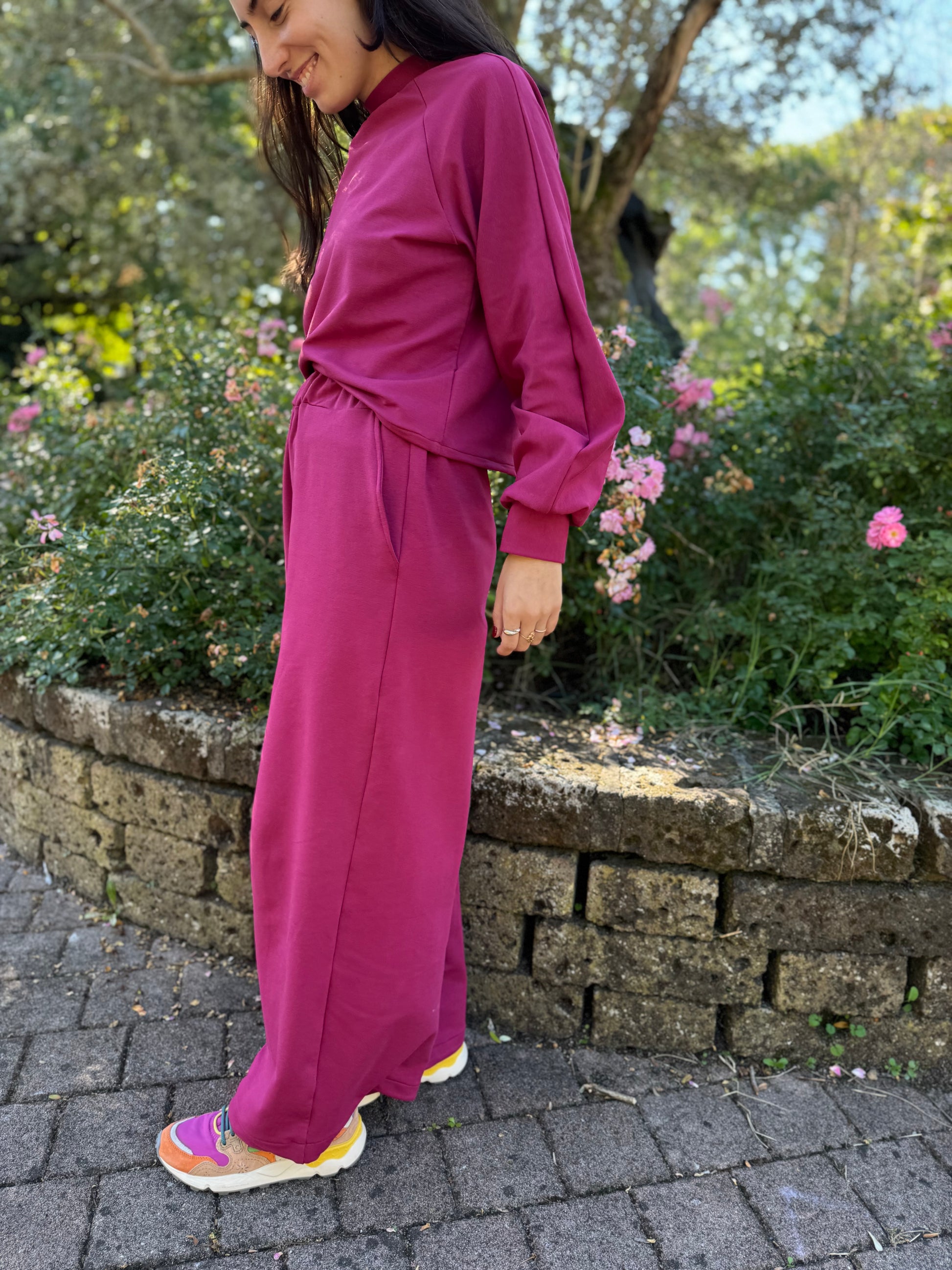 Pantaloni palazzo e felpa leggermente crop per garantire la massima vestibilità.